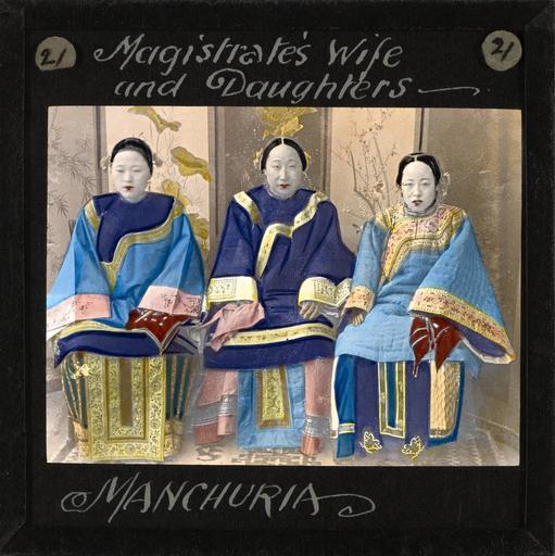 Keywords: Magistrates Wife and Daughters, Manchuria, ca. 1882-ca. 1936 (imp-cswc-GB-237-CSWC47-LS8-021).jpg en <br> Magistrates Wife and Daughters Manchuria ca 1882-ca 1936 Photograph of a Magistrate's wife and two daughters in Manchuria China All three women are wearing traditional decorative Chinese robes they are pictured sitting in front of an ornate screen ; This belongs to a series of Church of Scotland Foreign Missions Committee lantern slides relating to the Scottish missionary Dugald Christie Dugald Christie was born in Glencoe in Scotland and studied medicine under the auspices of the Edinburgh Medical Missionary Society In 1882 along with his first wife Elizabeth he went to Manchuria to work as a medical missionary of the United Presbyterian Church of Scotland He worked initially in Newchang and later moved to the capital of Mukden where he opened Manchuriaas first hospital in 1884 In 1912 he established Mukden Medical College Dugald Christie retired in 1923 and died in Edinburgh in 1936 Photographer Unknown Filename imp-cswc-GB-237-CSWC47-LS8-021 tif Coverage date 1882/1936 Part of collection International Mission Photography Archive ca 1860-ca 1960 Geographic subject region Manchuria Type images Part of subcollection Photographs from the Centre for the Study of World Christianity University of Edinburgh U K ca 1900-ca 1940s Repository name Centre for the Study of World Christianity Archival file impaunpub_Volume7/1684 url Repository address The University of Edinburgh School of Divinity New College Mound Place Edinburgh EH1 2LX United Kingdom Geographic subject country China Format aacr2 1 lantern slide 8 x 8 cm Geographic subject continent Asia Rights Contact the repository for details Part of series Dugald Christie LS8 Repository email divinity-CSWC ed ac uk Subject lcsh Keyword Justice Administration of; Women; Families Date created 1882/1936 Publisher of the digital version University of Southern California Libraries Subject aat genre group portraits Format aat lantern slides Legacy record ID impa-m69128 Access conditions http //www ed ac uk/schools-departments/divinity/research/centres/world-christianity/collections-resources File GB 237 CSWC47/LS8/21 1882/1936 date created author http //digitallibrary usc edu/cdm/ref/collection/p15799coll123/id/64803 PD-old-70-1923 Magic lantern images Images from USC Digital Library uploaded by Fæ International Mission Photography Archive ca 1860-ca 1960 |