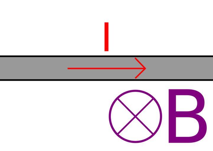 Keywords: Magnetic force q4.svg en A wire with current and magnetic field labelled own Sjlegg Physics diagrams