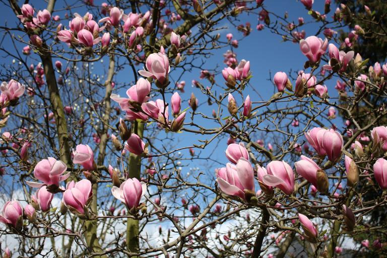 Keywords: magnolia flowers plant garden tree spring nature pink sky blue white