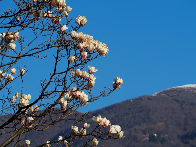 Keywords: magnolia spring pink blossom bloom tree nature mountain snow