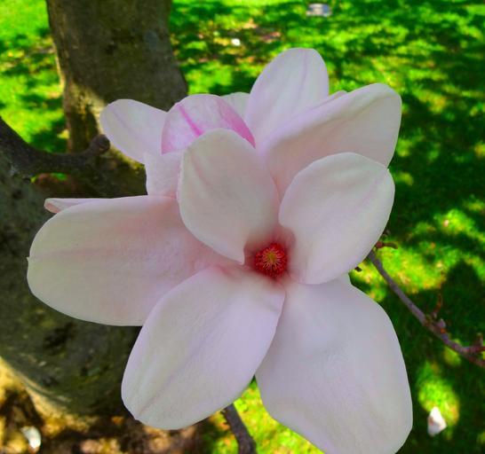 Keywords: magnolia tree outdoors nature landscape color flower bloom branch grass tree