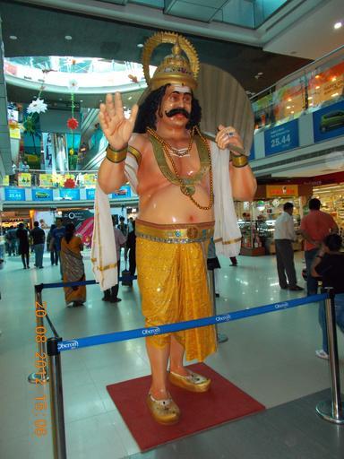 Keywords: Mahabali Mascot.JPG en The mascot of Mahabali in Oberon Mall Kochi during the Onam festival own Veera sj 2012-08-20 Cc-zero Interior of Oberon Mall Kochi Statues in Kochi Kerala Mahabali watermark