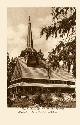 | Keywords: Maidanka. Wooden Church WDL10056.png  Artwork ru  айданка Де евянная це ковь fr Maidanka Église en bois en Maidanka Wooden Church zh 迈丹卡  制教堂 pt Maidanka Igreja em madeira ar مايدانكا الكنيسة الخشبية ru Снимок входит в альбом ве оятно опубликованный около 1920 г кото ый соде жит 20 фотог афий с видами Подка патской Руси Большая часть этого го истого к ая до Пе вой ми овой войны п инадлежала Авст о-Венг ии а в 1919 г он вошел в состав нового Чехословацкого госуда ства Сегодня самая к упная часть Подка патской Руси об азует Зака патскую область западной Ук аины а меньшие части п инадлежат Словакии и Польше Де евянная це ковь в селе  айданка подобно большинству це квей в Ка патских го ах имеет к утоскатную к ышу с навесом кото ая однов еменно защищает здание от зимней непогоды и ук ывает п ихожан в случае если х ам пе еполнен Село сейчас известное как  айдан  асположено в восточной части Подка патской Руси <br>Це кви; Де евянные соо ужения fr Cette image fait partie d'un album probablement publié en 1920 environ et qui contient 20 photographies de scènes de la Ruthénie subcarpatique Cette région montagneuse qui faisait essentiellement partie de l'Autriche-Hongrie avant la Première Guerre mondiale fut intégrée au nouvel État tchécoslovaque en 1919 Aujourd'hui la majeure partie de la Ruthénie subcarpatique forme l'oblast de Transcarpatie dans l'ouest de l'Ukraine avec des terres plus petites en Slovaquie et en Pologne Comme la plupart des églises construites dans les Carpates l'église en bois du village de Maidanka est dotée d'un toit à très forte pente et d'une corniche la protégeant des éléments pendant les hivers rigoureux et abritant le reste des fidèles lorsque l'église est comble Le village aujourd'hui appelé Majdan Maydan ou Maidan se situe dans l'est de la Ruthénie subcarpatique <br>Églises; Bâtiments en bois en This image is part of an album probably published in about 1920 that contains 20 photographs of scenes in Carpathian Ruthenia a mountainous region most of which was part of the Austria-Hungary before World War I but which became part of the new Czechoslovak state in 1919 Today the largest portion of it forms Zakarpattia Oblast in western Ukraine with smaller parts in Slovakia and Poland The wooden church in Majdanka village has a steeply pitched roof with an overhang like most churches in the Carpathian Mountains which both protects it against the worst of the winter weather and shelters additional worshipers when the church is crowded The village known today as Majdan Maydan or Maidan is in the eastern part of Carpathian Ruthenia <br>Churches; Wooden buildings zh 这张照片出自  尔巴阡-鲁塞尼亚 相册  该相册可能出版于 1920 年左右, 其中收集了 20 张 尔巴阡-鲁塞尼亚风景照片  尔巴阡-鲁塞尼亚是 个多山的 区, 战之前其大部分属于奥匈 国,但  1919 年成为新的国家捷克斯洛伐克的 部分 今天,其 大的部分构成乌克兰西部的外 尔巴阡州,其余较小部分属于斯洛伐克和波兰 这座 制教堂位于迈丹卡 ,与 尔巴阡山区的大部分教堂 样,  个带挑檐的陡 屋顶,用以抵挡冬季的极度严寒和 人多时为站 外 的礼  遮蔽风雨 这个 庄(今天称为马伊丹 梅丹或迈丹)位于 尔巴阡-鲁塞尼亚 部  <br>教堂;  制建筑 pt Esta imagem faz parte de um álbum provavelmente publicado por volta de 1920 que contém 20 fotografias de cenas em Rutênia dos Cárpatos uma região montanhosa em que grande parte pertencia à Áustria-Hungria antes da Primeira Guerra Mundial mas que se tornou parte do novo estado da Tchecoslováquia em 1919 Atualmente a maior parte dela forma o Oblast da Transcarpátia na Ucrânia ocidental com partes menores na Eslováquia e Polônia A igreja de madeira no povoado de Majdanka tem um telhado com acentuada inclinação e com beiral como a maioria das igrejas nas Montanhas dos Cárpatos que a protege contra o pior do inverno e fornece abrigo adicional aos fiéis quando a igreja está lotada O povoado conhecido atualmente como Majdan Maydan ou Maidan está localizado na parte oriental da Rutênia dos Cárpatos <br>Igrejas; Construções de madeira ar تُعد هذه الصورة جزءًا من ألبوم نُشر على الأرجح حوالي عام 1920، ويحتوي على 20 صورة فوتوغرافية لمناظر في روثينيا الكارباتية، وهي منطقة جبلية كان مُعظمها جزءًا من الإمبراطورية النمساوية المجرية قبل اندلاع الحرب العالمية الأولى، ولكنها أصبحت جزءًا من الدولة التشيكوسلوفاكية الجديدة عام 1919 يقع مُعظم الإقليم حاليًا في مقاطعة زاكارباتيا أوبلاست غرب أوكرانيا، وتوجد أنحاءٌ منه في سلوفاكيا وبولندا كما هو الحال في معظم الكنائس الواقعة بجبال الكاربات، يعلو الكنيسة الخشبية التي تقع بقرية مايدانكا سقف شديد الميل، به شرفة، وهو يقي الكنيسة من تقلبات الشتاء ويأوِي أي مُصلِّين إضافيين حينما تزدحم الكنيسة تقع القرية التي تُعرف الي