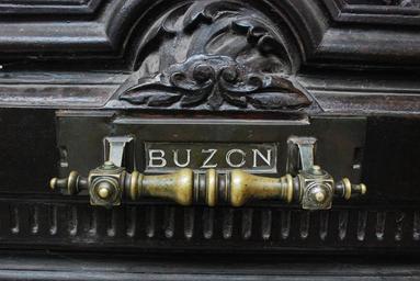 Keywords: mailbox old door bronze