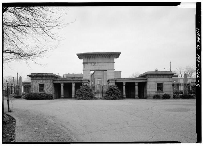 | Keywords: Main gate of Mount Auburn Cemetery - 080161pv.jpg Main gate of Mount Auburn Cemetery 580 Mount Auburn Street Cambridge Massachusetts USA Built 1843; architect Dr Joseph Bigelow These gates replaced an identical original built of wood in 1832 Historic American Buildings Survey HABS Library of Congress Prints and Photograph Division Washington D C 20540 USA Survey number HABS MA-1216 http //hdl loc gov/loc pnp/hhh ma1360 December 12 1987 1967 per HABS record Jack E Boucher Public domain - Origianl work of the US Federal Government Main gate of Mount Auburn Cemetery PD-USGov |