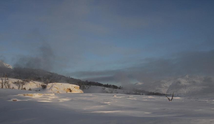 Keywords: yellowstone yellowstone national park yellowstonenationalpark national park nationalpark outdoor sky Main Terrace at Mammoth Hot Springs; Jim Peaco; December 2014; Catalog #19776d; Original #IMG_0889 Main Terrace at Mammoth Hot Springs; Jim Peaco; December 2014; Catalog #19776d; Original #IMG_0889