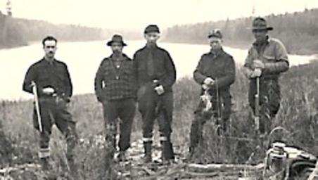 | Keywords: MaineHuntingParty1941.png en Maine Allagash wilderness hunting party on Umsaskis Lake in the autumn of 1941 Dave Jackson 1902-1978 on the right is holding a self loading Model 10 Winchester rifle chambered for the 401 Winchester Self-Loading cartridge Albert Wellman 1880-1957 in the center is holding a lever-action Model 94 Winchester rifle chambered for the 30-30 Winchester cartridge Albert Wellman Jr 1911-1972 on the left is holding a bolt-action National Match M1903 Springfield rifle chambered for the 30-06 Springfield cartridge old family photo Albert Wellman 1941-11-00 cc-zero Allagash Maine Maine in the 1940s Hunting in the United States |