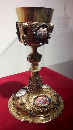 Keywords: Mair Chalice with passion of Christ set with gemstones 02.jpg Artwork Creator Michael Mair between 1695 1700 gilt enamel turquoise garnet topazes amethysts silver cm 29 5 10 19 5 Institution Museum of the Warsaw Archdiocese 0 accession number MAW-6729 object history ProvenanceEvent 1701 gift Cathedral of Saint John Warsaw Justynian Bartłomiej Zaruski abbot of Sulejów ProvenanceEvent 1938 transfer Museum of the Warsaw Archdiocese ProvenanceEvent 1944 theft Nazi Germany ProvenanceEvent 1952 restitution PRL Poland ProvenanceEvent 1952 deposit National Museum in Warsaw ProvenanceEvent 1998 transfer Museum of the Warsaw Archdiocese credit line The chalice encrusted with gemstones with six enamelled plaques depicting scenes from the Passion of Christ as described in the New Testament the Crowning with Thorns Ecce Homo the Crucifixion the Last Supper the Agony in Gethsemane and the Flagellation http //poland2015 chnmuseum cn/en/ poland2015 chnmuseum cn https //pl pinterest com/pin/418905202819377091/ pl pinterest com own Cc-zero DEFAULTSORT 1695-1700; Chalice with passion of Christ set with gemstones Chalice with passion of Christ by Michael Mair Museum of the Warsaw Archdiocese |