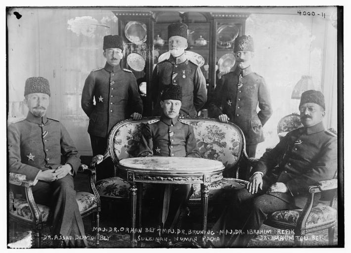 | Keywords: Maj. Dr. Orhan Bey, Maj. Dr. Bruning, Maj. Dr. Ibrahim Refik, Dr. Assaf Dervish Bey, Suleiman Numan Pacha, Dr. Ibrahim Tau Bey (LOC) (14812952738).jpg Bain News Service publisher Maj Dr Orhan Bey Maj Dr Bruning Maj Dr Ibrahim Refik Dr Assaf Dervish Bey Suleiman Numan Pacha Dr Ibrahim Tau Bey between ca 1915 and ca 1920 1 negative glass ; 5 x 7 in or smaller Notes Title from data provided by the Bain News Service on the negative Photo shows Dr Ibrahim Refik Saydam 1881-1942 standing on right and Dr Suleyman Numan Pasha seated at center with others Forms part of George Grantham Bain Collection Library of Congress Format Glass negatives Rights Info No known restrictions on publication Repository Library of Congress Prints and Photographs Division Washington D C 20540 USA http //hdl loc gov/loc pnp/pp print hdl loc gov/loc pnp/pp print General information about the Bain Collection is available at http //hdl loc gov/loc pnp/pp ggbain hdl loc gov/loc pnp/pp ggbain Higher resolution image is available Persistent URL http //hdl loc gov/loc pnp/ggbain 22902 hdl loc gov/loc pnp/ggbain 22902 Call Number LC-B2- 4000-11 https //www flickr com/photos/library_of_congress/14812952738/ Maj Dr Orhan Bey Maj Dr Bruning Maj Dr Ibrahim Refik Dr Assaf Dervish Bey Suleiman Numan Pacha Dr Ibrahim Tau Bey LOC LOC-image ggbain 22902 https //www flickr com/people/8623220 N02 The Library of Congress http //www loc gov/rr/print/195_copr html noknown The Library of Congress Flickr Commons PD-Bain The Library of Congress https //flickr com/photos/8623220 N02/14812952738 2016-09-08 09 52 12 pd Uncategorized 2016 December 20 |
