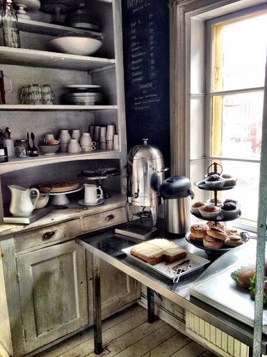 Keywords: maja's café gävle gävle's old town got café window old fashioned coffee bread interior design cabinets china pastries sandwiches thermos