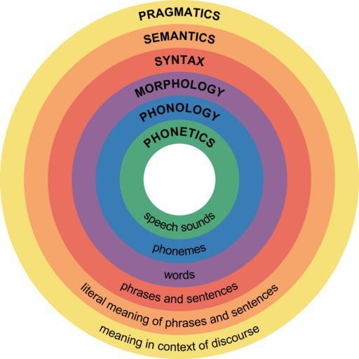 | Keywords: Major levels of linguistic structure.svg en Major levels of linguistic structure Linguistics defines the levels of structure based on analysis across and within languages and computational linguistics provides the methods for assigning structure to textual data As shown in the figure the major levels of structure applicable here are phonological morphological syntactic semantic and the pragmatic or discourse level The phonological level deals with the structure of the sounds that convey linguistic content in a language The morphological level of a language is the level at which meaning can be assigned to parts of words and the level that describes how morphemes the smallest meaning elements of words are combined to make a word The syntactic level of structure concerns the structure of the sentence i e the categories of words and the order in which they are assembled to form a grammatical sentence The semantic level of structure of the sentence is computationally defined to be the level of representation supporting inferencing and other logical operations Major_levels_of_linguistic_structure jpg 2010-01-03 16 10 UTC Major_levels_of_linguistic_structure jpg James J Thomas and Kristin A Cook Ed derivative work McSush <span class signature-talk >talk</span> Major levels of linguistic structure-fr svg Created with Text Editor redrawn as svg image McSush Major_levels_of_linguistic_structure jpg PD-USGov original upload log This image is a derivative work of the following images File Major_levels_of_linguistic_structure jpg licensed with PD-USGov 2008-07-14T14 50 47Z Mdd 959x959 82554 Bytes <nowiki> en Major levels of linguistic structure National Visualization and Analytics Center http //nvac pnl gov/agenda stm Illuminating the Path The Research and Development Agenda for Visu</nowiki> Uploaded with derivativeFX Information visualization Round diagrams Sociolinguistics Visual analytics Pictures formerly showing a librsvg bug |