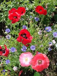 Keywords: maki summer nature grass summer flowers flower pink bloom garden garden flower lovely bright flower bed closeup cornflowers