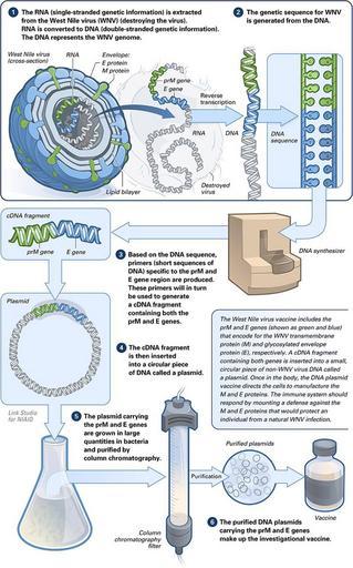 | Keywords: Making of a DNA vaccine.jpg plasmid en ” that contains genes that code for proteins of a pathogen When the vaccine is injected into the host the inner machinery of the host cells reads the DNA and converts it into proteins from the pathogen Recognizing that the proteins are foreign the cells display them on their surface to alert the body ™s immune system ” both helper T cells which spur the production of antibodies and killer T cells which kill infected cells outright http //www3 niaid nih gov/news/newsreleases/2005/wnvvaxtrial htm NIAID Begins Clinical Trial of West Nile Virus Vaccine on National Institute of Allergy and Infectious Diseases en site author ~ 2005 <gallery> File Making of a DNA vaccine-UK png Ukrainian translation </gallery> PD-USGov Vaccines Biology diagrams |
