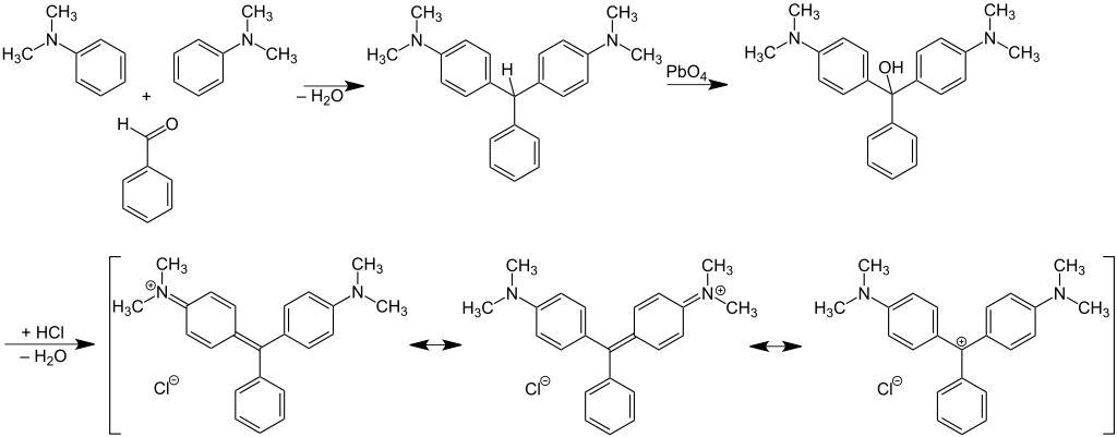 Keywords: Malachite green Synthesis V.1.svg en Malachite_green_Synthesis de Malachitgrün Synthese own Jü 03/07/2010 Malachite green