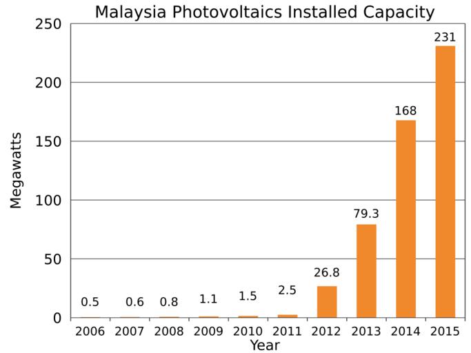 | Keywords: Malaysia Photovoltaics Installed Capacity.svg translate yes en Installed photovoltaics in Malaysia from 2006 to 2015 Source http //www iea-pvps org/index php id 92 eID dam_frontend_push docID 2795 IEA-PVPShttp //www iea-pvps org/fileadmin/dam/public/report/PICS/IEA-PVPS_-__A_Snapshot_of_Global_PV_-_1992-2015_-_Final_2_02 pdf 2016-03-11 own Delphi234 other versions cc-zero Solar energy in Malaysia Photovoltaic power statistics | ||||