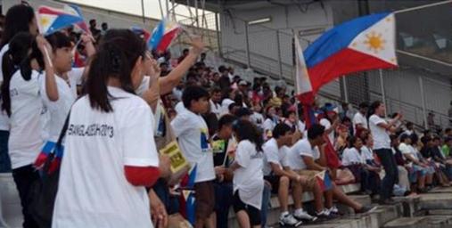| Keywords: Malditas bangladesh match fans 1.jpg en Fans of the Philippine women ™s football team in attendance at the Bangabandhu National Stadium for the Bangladesh v Philippines match held on May 25 2013 2013-05-25 http //www gov ph/2013/05/28/phl-embassy-in-dhaka-extends-support-to-phl-womens-football-team-malditas/ PH Government other versions Custom license marker 2016 12 17 Official Gazette of the Philippines maintained by the Presidential Communications Development and Strategic Planning Office and PREGINET Philippines women's national association football team Bangabandhu National Stadium |