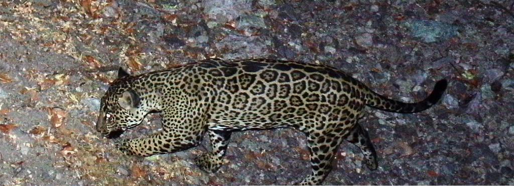 | Keywords: outdoor [UA Jaguar 2014 06-29 aa.jpg] Male jaguar photographed by automatic wildlife cameras in the Santa Rita Mountains on June 29, 2014, as part of a U.S. Fish and Wildlife Service/Department of Homeland Security-funded jaguar survey conducted by University of Arizona.  This is the same jaguar that has been repeatedly photographed in the Santa Rita Mountains.  Photo Courtesy of UA/USFWS [UA Jaguar 2014 06-29 aa.jpg] Male jaguar photographed by automatic wildlife cameras in the Santa Rita Mountains on June 29, 2014, as part of a U.S. Fish and Wildlife Service/Department of Homeland Security-funded jaguar survey conducted by University of Arizona.  This is the same jaguar that has been repeatedly photographed in the Santa Rita Mountains.  Photo Courtesy of UA/USFWS |