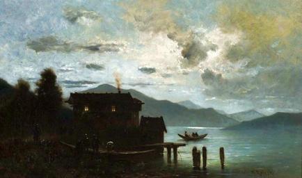 | Keywords: Malecki Mountain lake at dusk.jpg Artwork Creator Władysław Malecki ca 1870-1880 oil canvas cm 26 5 44 Institution National Museum Warsaw Not on view accession number MP 1035 object history ProvenanceEvent gift National Museum in Warsaw credit line W Malecki signature bottom right http //cyfrowe mnw art pl/dmuseion/docmetadata id 9112 cyfrowe mnw art pl See below PD-old-100-1923 1900 DEFAULTSORT 1870-1880 circa; Mountain lake at dusk Paintings by Władysław Malecki in the National Museum in Warsaw Mountain lakes 1870s landscape paintings |