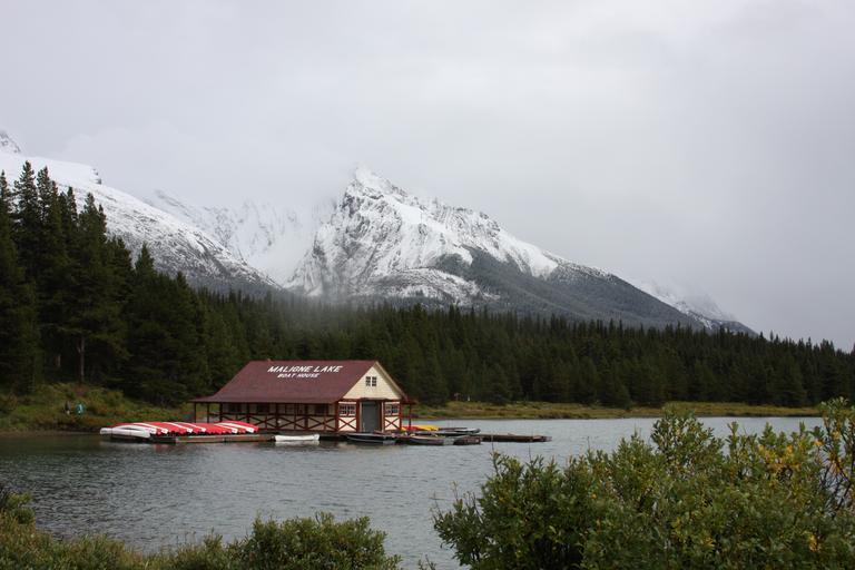 Keywords: canada lake jasper maligne lake rocky mountain boat house house maligne snow capped mountains alberta canadian rockies mountain boat snow