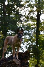 Keywords: malinois belgian shepherd dog portrait attention friendly male tree back light