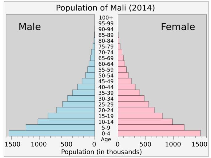 | Keywords: Malipop.svg  translate yes en Current population pyramid of Mali 2014 from UN estimates World Population Prospects http //esa un org/unpd/wpp/Excel-Data/population htm The 2012 Revision 2014-08-26 own Delphi234 cc-zero Population pyramids of Mali Uploaded with UploadWizard |