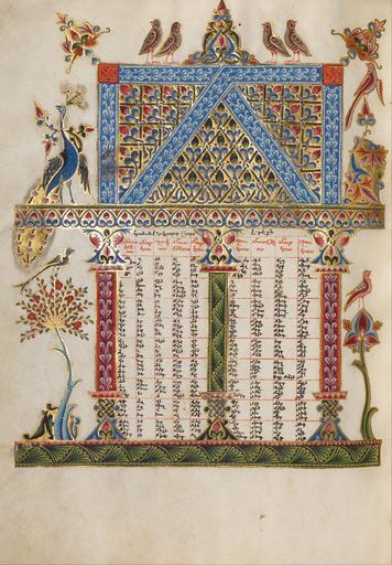 | Keywords: Malnazar - Canon Table Page - Google Art Project (6831740).jpg  4180277 Malnazar Armenian /collection/the-j-paul-getty-museum/artwork/canon-table-page-malnazar/6831740/ Malnazar illuminator /artist/malnazar/4191038/ 4191038 /collection/the-j-paul-getty-museum/ The J Paul Getty Museum 343005 http //www getty edu/museum 3/12/2012 5 39 54 PM /collection/the-j-paul-getty-museum/artwork/canon-table-page-malnazar/6831740/ 1637 1637 - 1638 Birds Flowers Tempera colors gold paint and gold leaf on parchment 252 6831740 True 1638 3/25/2012 12 41 42 PM lido getty edu-gm-obj110759 http //www getty edu/art/gettyguide/artObjectDetails artobj 110759 http //www getty edu/legal/copyright html Folio 1630 1640 Isfahan Persia Creation w183 x h252 cm 1637 - 1638 False 0 6953125 Part canon-table-page-malnazar Canon Table Page c 183 Tempera colors gold paint and gold leaf on parchment Birds Flowers http //www getty edu/legal/copyright html special url_id HAHd3De2n4w76w PD-old-100 Google Art Project works by Malnazar MS LUDWIG I 14 Getty museum - Malnazar's bible Canon tables Medieval miniatures of peacocks |