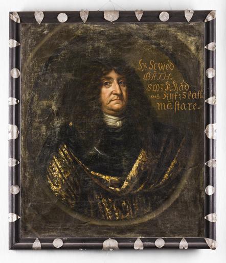 Keywords: Målning. Porträtt. Seved Bååt - Skoklosters slott - 87010.tif Seved Bååt Riksskattmästare plain text Midjebild fas höger Målad oval Svart dräkt med vit halsduk guldstickad mantel <br/>Inskrift Hr Sewed Båth S wr R Råd och Rijks Skattmästare <br/>Tillskriven D K Ehrenstrahl <br/>Spikad direkt på ramen <br/>Svart ram med påskikade hjärtan och rundlar av silverpapper Ramlistens bredd 45 mm original caption Målning Porträtt Seved Bååt SKO 1035<br/> Nyckelord Porträtt Målning Bååt Ram Man Föremålsbild Mustasch Guld Mörk decade 1660 oil on canvas size mm 780 920 SKO place of origin original filename sm_dig4646_1035 22321 inventory number SKO 1035 87010 PD Jens Mohr Jens Mohr Portrait paintings Men in art Portrait paintings of men with moustaches Gold Media contributed by LSH unmatched creator Media contributed by LSH unmatched keyword Media contributed by LSH 2013-10
