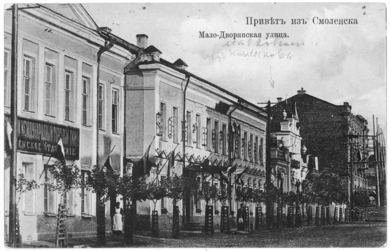 | Keywords: Malodvoryanskaya street in Smolensk.jpg en Malo-dvoryanskaya street in Smolensk now - Mayakovsky street ru ало-дво янская улица в Смоленске ныне - улица аяковского О игинальная отк ытка е установлены before 1917 года PD-RusEmpire 20th-century postcards of Russia |