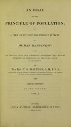 Keywords: Malthus - Essay on the principle of population, 1826 - 5884843.tif Book Malthus Thomas Robert Essay on the principle of population John Murray Albemarle street London eng it An essay on the principle of population; or A view of its past and present effects on human happiness; with inquiry into our prospects respecting the future removal or mitigation of the evils which it occasions By T R Malthus ¦ 1 - London John Murray Albemarle street 1826 London printed C Roworth Bell Yard Temple Bar - XVIII 535 1 p ; 4° - Segn A-2L4 2M4 BEIC 5884843 Institution BEIC PD-old-100-1923 Economics by decade Thomas Malthus Economics book covers |