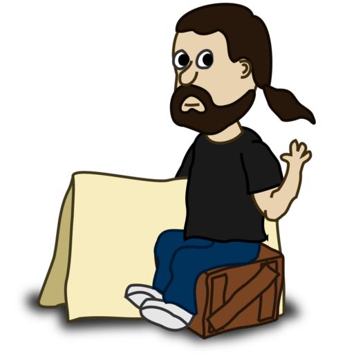Keywords: man artist waving ponytail sitting comic beard cartoon adult male person human character