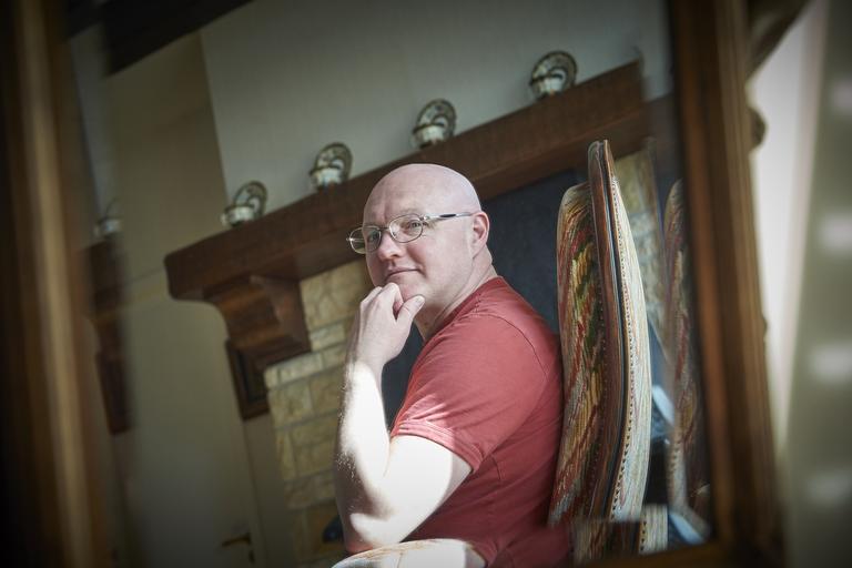 Keywords: man bald family home antique interior thinking