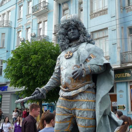 Keywords: man crowd buildings performing performance living statue vinnitska ukraine urban city cities tree architecture outside summer spring entertainment entertainer standing still