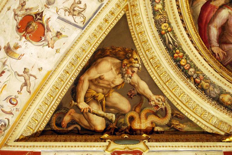 Keywords: man dragon painting art ceiling particular palazzo old florence tuscany italy snake