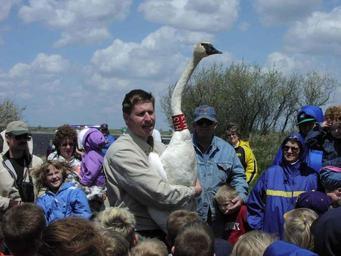 View Original:Man holds trumpeter swan during demonstration cygnus buccinator.jpg (2100x1576)