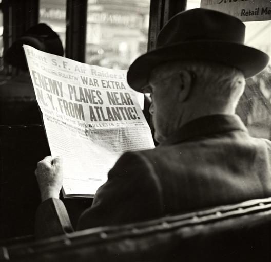 Keywords: man newspaper hat bus reading vintage photo street 1930's person old photos history