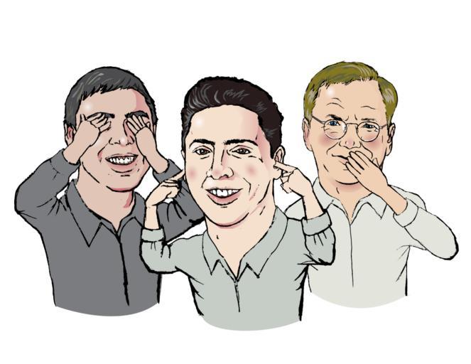 Keywords: man persons guys group google larry page page eric schmidt eric schmidt sergey brin blind dumb deaf caricature funny cartoon