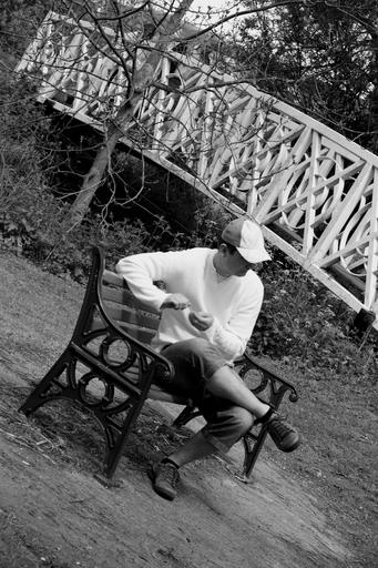 Keywords: man sitting bench park summer spring lovely nature bridge think thinking sad depressed cry