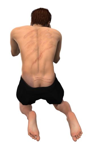 Keywords: man sore back thrashing sad body naked psyche skin live male erotic