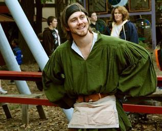Keywords: man vendor caucasian smile seller cheerful young beard costume