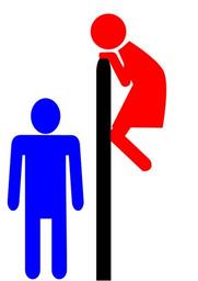 Keywords: man woman sign icon symbol boy lady silhouette female male girl symbols funny toilet pictogram bathroom restroom stickman stick figure matchstick man gents peek signage toilette washroom loo blue red climbing looking