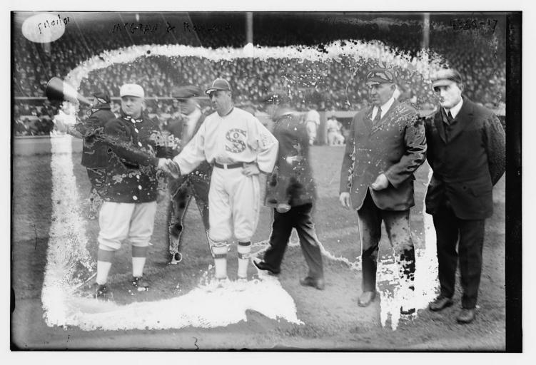 | Keywords: (Managers John McGraw, New York NL & Clarence "Pants" Rowland, Chicago AL at 1917 World Series (baseball)) (LOC) (22752877167).jpg Bain News Service publisher Managers John McGraw New York NL Clarence Pants Rowland Chicago AL at 1917 World Series baseball 1917 1 negative glass ; 5 x 7 in or smaller Notes Original data provided by the Bain News Service on the negatives or caption cards McGraw Rowland Corrected title and date based on research by the Pictorial History Committee Society for American Baseball Research 2006 Forms part of George Grantham Bain Collection Library of Congress Format Glass negatives Rights Info No known restrictions on publication Repository Library of Congress Prints and Photographs Division Washington D C 20540 USA http //hdl loc gov/loc pnp/pp print hdl loc gov/loc pnp/pp print General information about the Bain Collection is available at http //hdl loc gov/loc pnp/pp ggbain hdl loc gov/loc pnp/pp ggbain Higher resolution image is available Persistent URL http //hdl loc gov/loc pnp/ggbain 25485 hdl loc gov/loc pnp/ggbain 25485 Call Number LC-B2- 4360-17 https //www flickr com/photos/library_of_congress/22752877167/ Managers John McGraw New York NL Clarence Pants Rowland Chicago AL at 1917 World Series baseball LOC LOC-image ggbain 25485 https //www flickr com/people/8623220 N02 The Library of Congress http //www loc gov/rr/print/195_copr html noknown The Library of Congress Flickr Commons PD-Bain The Library of Congress https //flickr com/photos/8623220 N02/22752877167 2016-09-08 06 54 30 pd 1917 World Series |