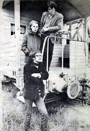 Keywords: Manal en vagón de tren.jpg es El grupo Manal arriva Alejandro Medina en el medio Claudio Gabis y abajo Javier Martinez http //www myspace com/gabisclaudio/photos/13489749 Sin datos 1970 PD-AR-Photo Javier Martínez 1970 in Argentina Manal Claudio Gabis Black and white photographs of standing men Railway coaches of Argentina