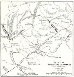 | Keywords: Manassas Station 26 August 1862.jpg  Manassas Station Operations of the American Civil War at sunset on 26 August 1887 From p 527 of the 1887 book 'Battles and Leaders of the Civil War being for the most part contributions by Union and Confederate officers based upon the Century War Series ' volume 2 Uploaded by the British Library to Flickr https //www flickr com/photos/britishlibrary/11288786353/ here Cropped British Library image Robert Underwood Johnson and Clarence Clough Buel book authors other versions PD-old-70-1923 Northern Virginia Campaign Battles and leaders of the Civil War 1887 Maps of the American Civil War |