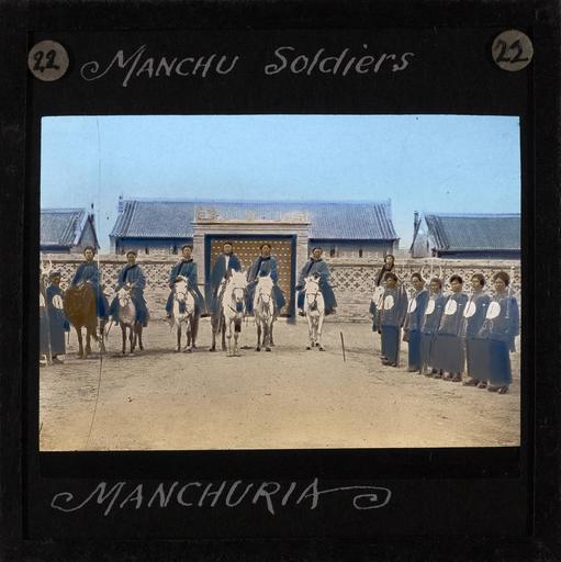 Keywords: Manchu Soldiers, Manchuria, ca. 1882-ca. 1936 (imp-cswc-GB-237-CSWC47-LS8-022).jpg en <br> Manchu Soldiers Manchuria ca 1882-ca 1936 Photograph of a group of Manchu Soldiers A number of the soldiers are on horse back and others are on foot They are all dressed in uniform The soldiers are pictured in front of a number of low buildings behind an ornate gate and wall ; This belongs to a series of Church of Scotland Foreign Missions Committee lantern slides relating to the Scottish missionary Dugald Christie Dugald Christie was born in Glencoe in Scotland and studied medicine under the auspices of the Edinburgh Medical Missionary Society In 1882 along with his first wife Elizabeth he went to Manchuria to work as a medical missionary of the United Presbyterian Church of Scotland He worked initially in Newchang and later moved to the capital of Mukden where he opened Manchuriaas first hospital in 1884 In 1912 he established Mukden Medical College Dugald Christie retired in 1923 and died in Edinburgh in 1936 Photographer Unknown Filename imp-cswc-GB-237-CSWC47-LS8-022 tif Coverage date 1882/1936 Part of collection International Mission Photography Archive ca 1860-ca 1960 Geographic subject region Manchuria Type images Part of subcollection Photographs from the Centre for the Study of World Christianity University of Edinburgh U K ca 1900-ca 1940s Repository name Centre for the Study of World Christianity Archival file impaunpub_Volume7/1685 url Repository address The University of Edinburgh School of Divinity New College Mound Place Edinburgh EH1 2LX United Kingdom Geographic subject country China Format aacr2 1 lantern slide 8 x 8 cm Geographic subject continent Asia Rights Contact the repository for details Part of series Dugald Christie LS8 Repository email divinity-CSWC ed ac uk Subject lcsh Keyword Soldiers Date created 1882/1936 Publisher of the digital version University of Southern California Libraries Subject aat genre group portraits Format aat lantern slides Legacy record ID impa-m69129 Access conditions http //www ed ac uk/schools-departments/divinity/research/centres/world-christianity/collections-resources File GB 237 CSWC47/LS8/22 1882/1936 date created author http //digitallibrary usc edu/cdm/ref/collection/p15799coll123/id/64804 PD-old-70-1923 Magic lantern images Images from USC Digital Library uploaded by Fæ International Mission Photography Archive ca 1860-ca 1960 |
