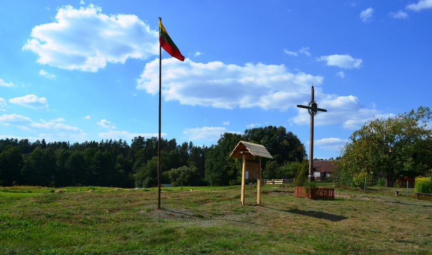 Keywords: Mančiagirė, vėliava ir kryžius.JPG Vėliava ir kryžius Mančiagirė Dzūkijos NP Varėnos raj own work 2013-08-17 Šarūnas Šimkus Mančiagirė Wooden crosses in Lithuania Photographs of flags of Lithuania Kryžiai su koplytelės tipo apvadu ar stogu centre |