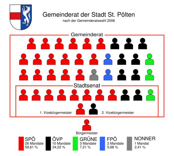 | Keywords: Mandatsverteilung Gemeinderat und Stadtsenat St Poelten 2006.svg Mandatsverteilung im Gemeinderat und Stadtsenat St Pöltens nach der Gemeinderatswahl 2006 own used Bild Coat_of_Sankt_Pölten svg and Bild Sitzverteilungsfigur svg von Benutzer DLiebisch 2008-10-18 AleXXw Released into the public domain by the author AleXXw Wappenrecht Original upload log page de wikipedia Mandatsverteilung_Gemeinderat_und_Stadtsenat_St_Poelten_2006 svg 2009-05-25 15 49 AleXXw 1000×900× 58726 bytes Ein Mandatar hat gefehlt Former different file 2008-10-18 19 59 Hk kng 1000×900× 55698 bytes Beschreibung Quelle Information Mandatsverteilung im Gemeinderat und Stadtsenat St Pöltens nach der Gemeinderatswahl 2006 selbst gezeichnet unter Verwendung von Bild Coat_of_Sankt_Pölten svg und Bild Sitzver St Pölten |