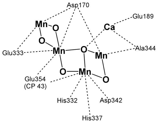 Keywords: Manganese cluster.svg en manganese-cluster Mn4-Ca of the oxygen evolving complex in photosynthesis The exact geometry is still elusive de Mangan-Ca-Cluster der sauerstoffproduzierenden Kommplexes in der Photosynthese Die genaue Anordnung ist noch nicht bekannt PMID 17082458 Yikrazuul 2009-05-15 Photosynthesis SVG photosynthesis |