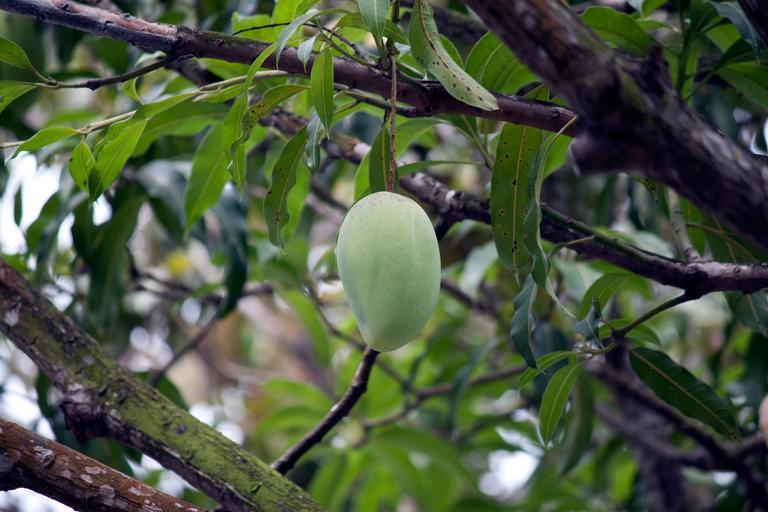 Keywords: mango green fruits trees branches greenery leaves woods woody stems wooden plants edible healthy sour nutritious unripe fresh tropical natural nature mangoes crops