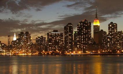 Keywords: manhattan midtown cityscape skyline view dusk evening twilight lights sunset metropolitan water reflection landmark nyc new york city urban metropolis river skyscraper usa scenic