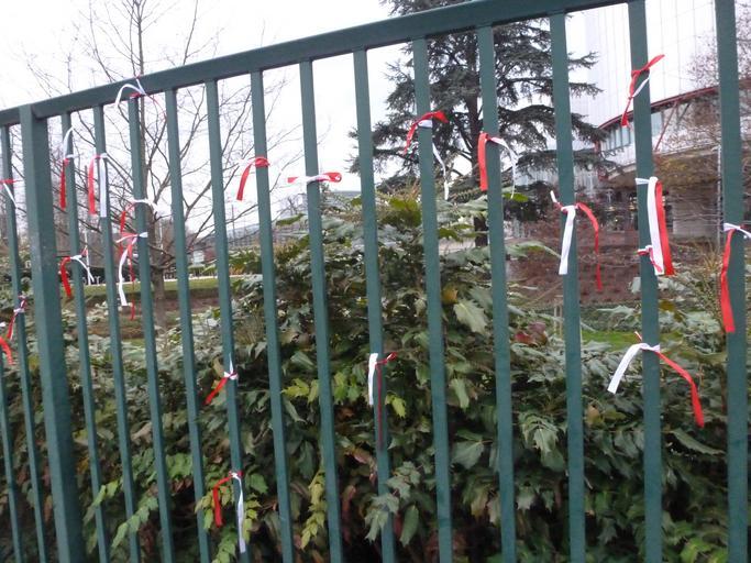 | Keywords: Manifestation contre la réforme territoriale 13-12-2014 26.jpg fr Manifestation contre la réforme territoriale et la fusion «Alsace-Champagne-Ardenne-Lorraine» le 13 décembre 2014 à Strasbourg <br /> Les manifestants ont noués sur la grille du palais des droits de l ™homme des rubans rouges et blanc couleurs de l ™Alsace 2014-12-13 17 01 16 own Paralacre other versions cc-zero Manifestation contre la réforme territoriale Strasbourg 13-12-2014 European Court of Human Rights Pictures by User Paralacre Uploaded with UploadWizard |